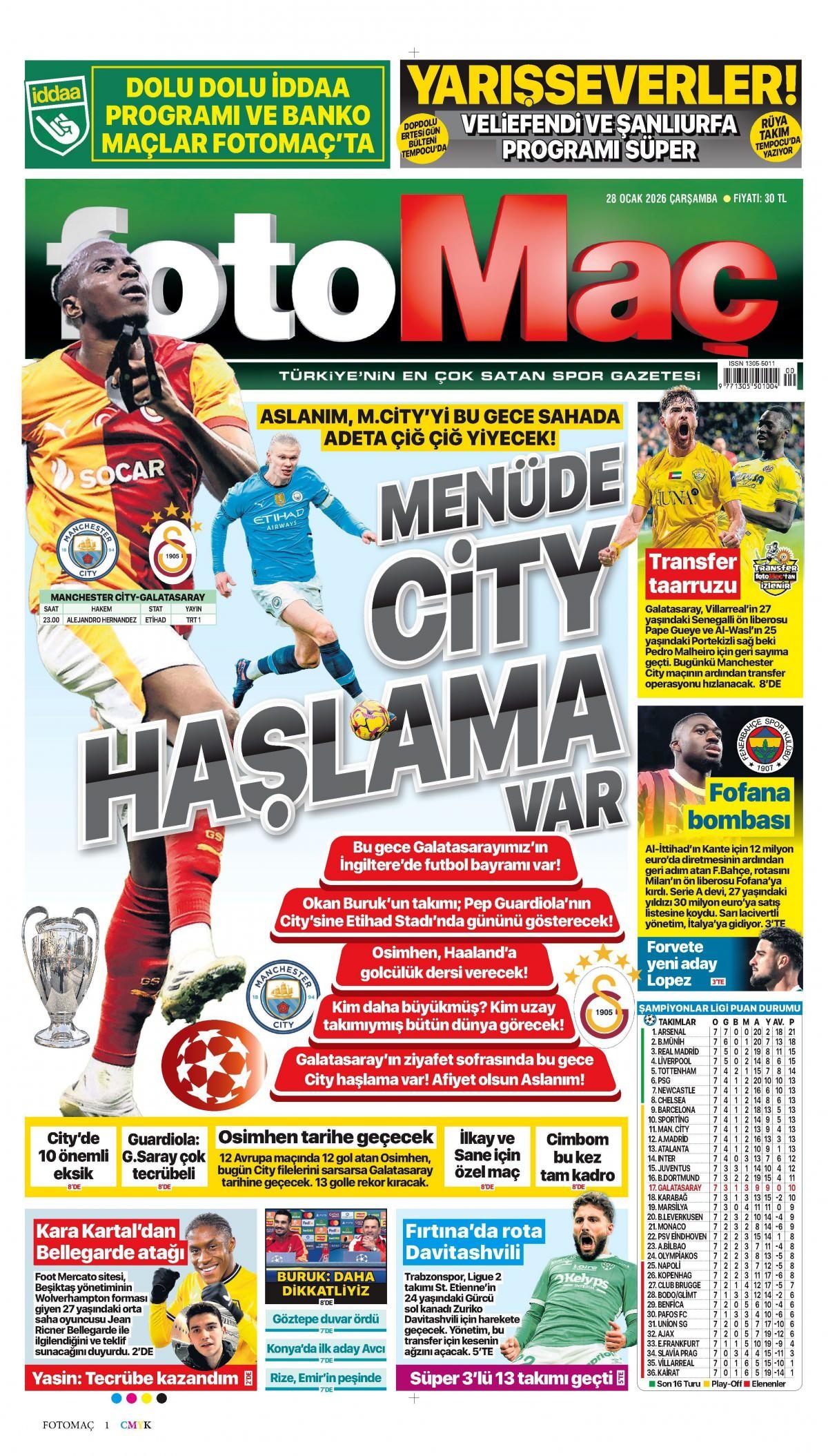 Fotomaç Gazetesi 29 Ocak 2026 Günü Manşeti