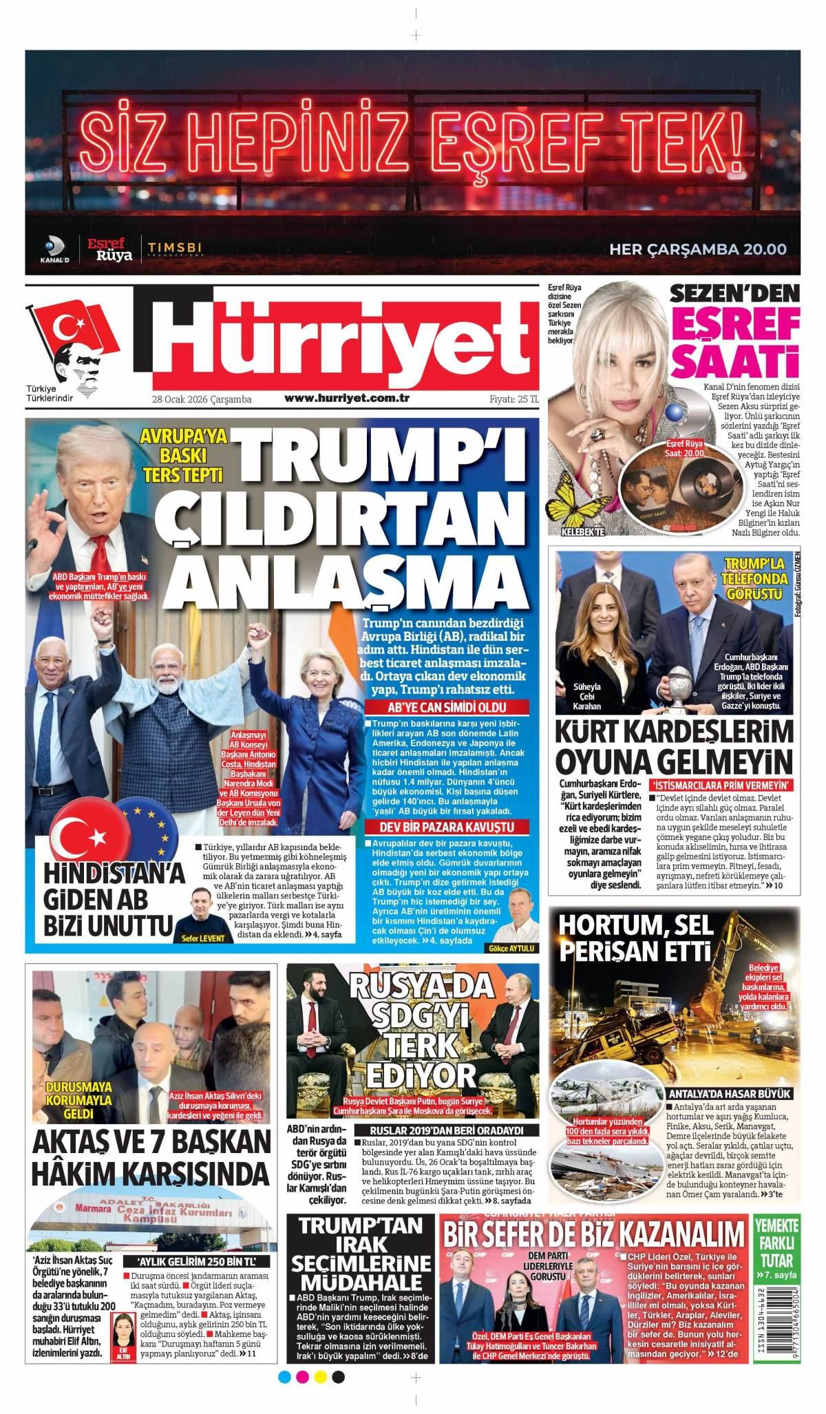 Hürriyet Gazetesi 29 Ocak 2026 Günü Manşeti