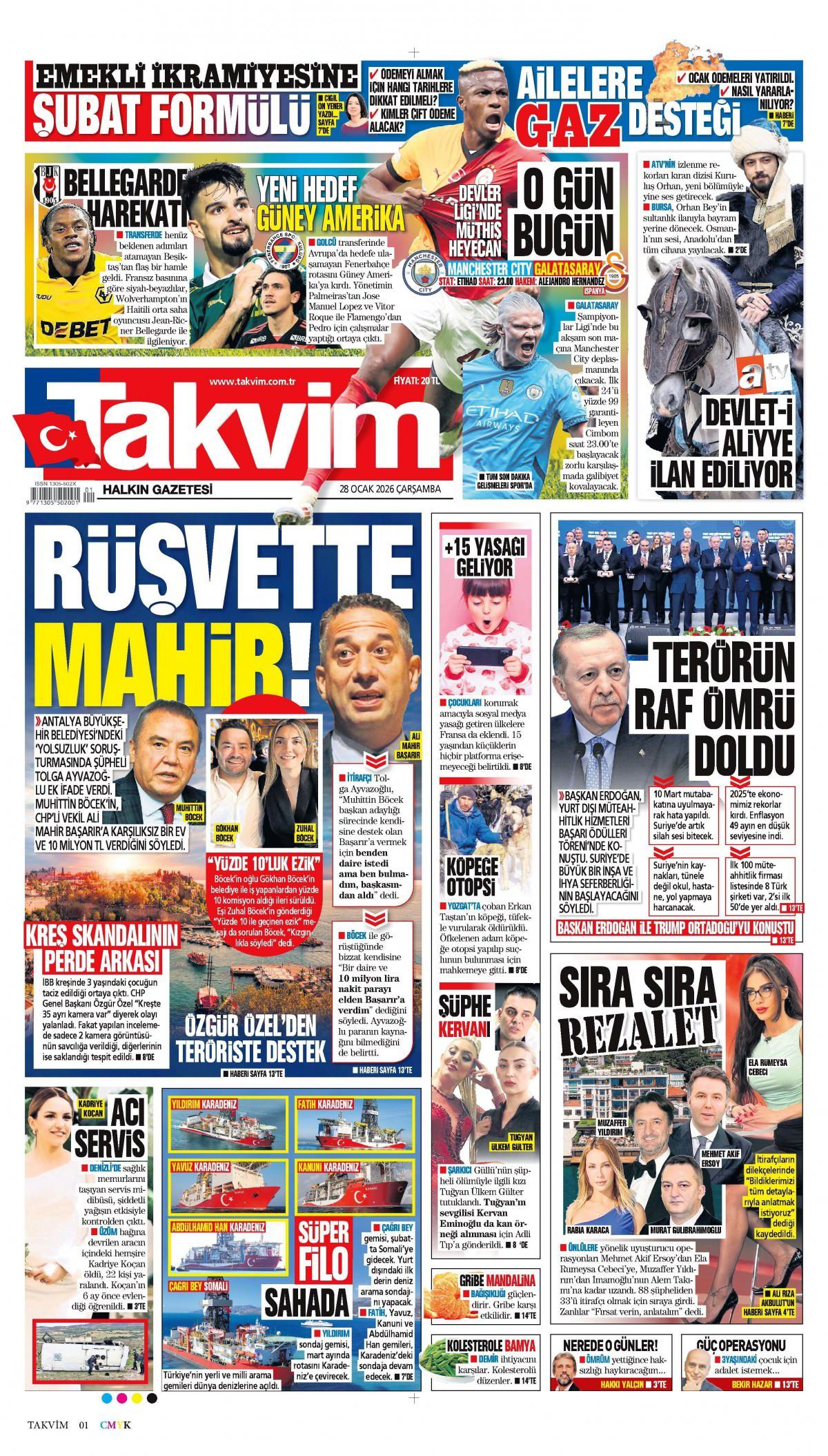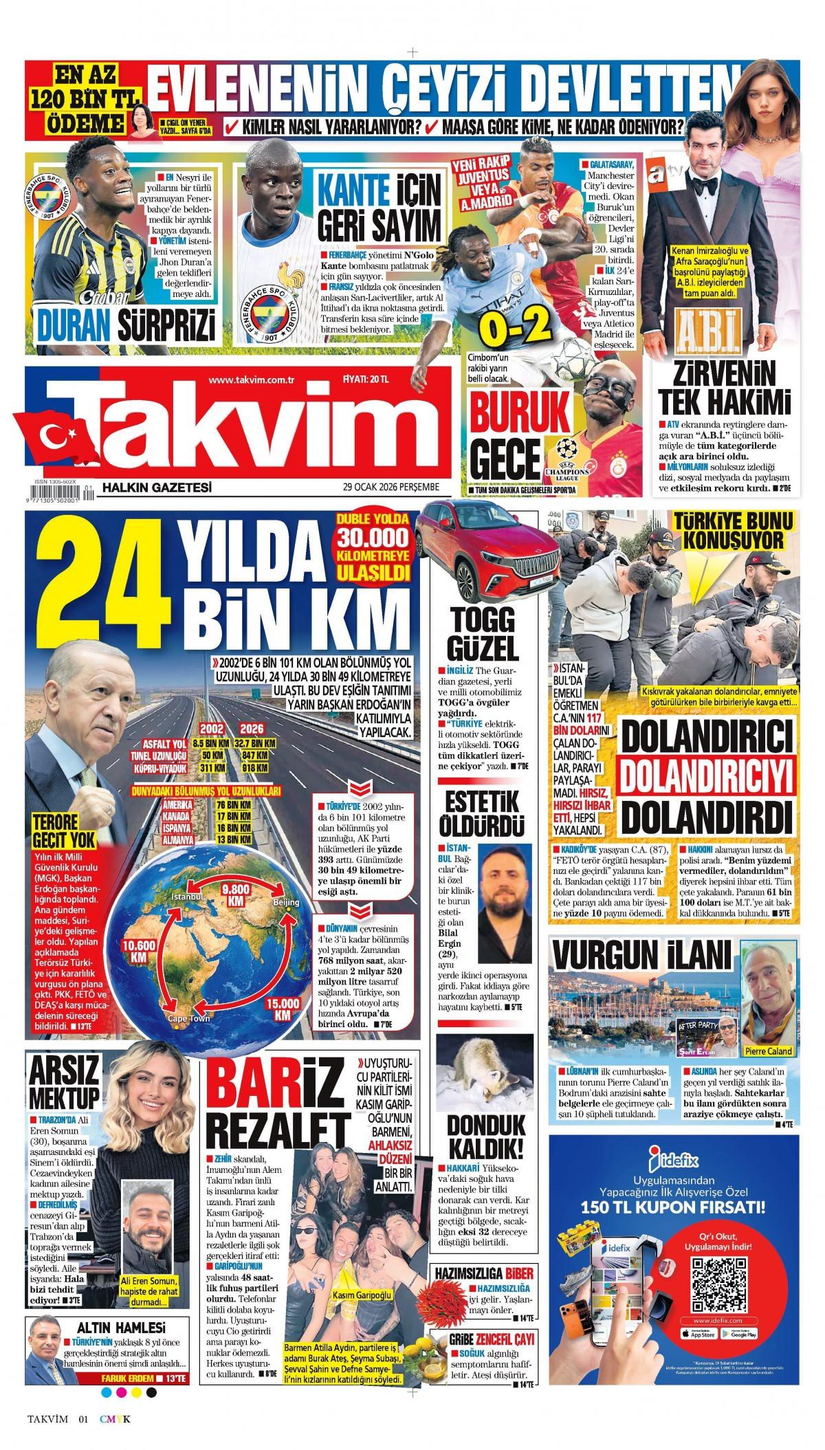 Takvim Gazetesi 29 Ocak 2026 Günü Manşeti