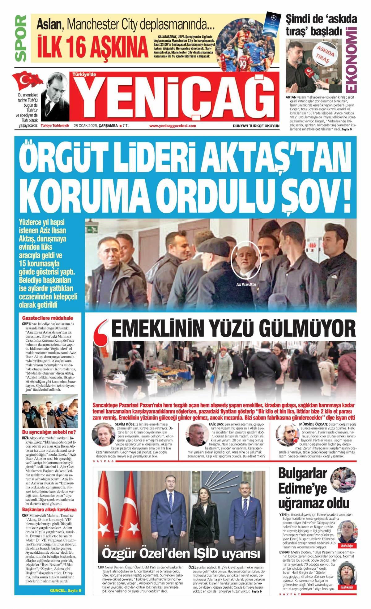 Yeni Çağ Gazetesi 29 Ocak 2026 Günü Manşeti